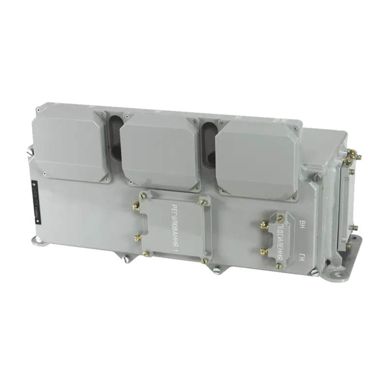 The BUSO-179 control unit works as part of the weapons stabilizer 2Э36-1 on the principle of a proportional integral-derivative controller, processes signals from gyroscope sensors of а traverse drive (ТО) and an elevation drive (ED), from the commander’s and operator’s control panels along with the target designation device, and generates error output signals that are proportional to weapons deviation relative to the target in horizontal and vertical planes.
