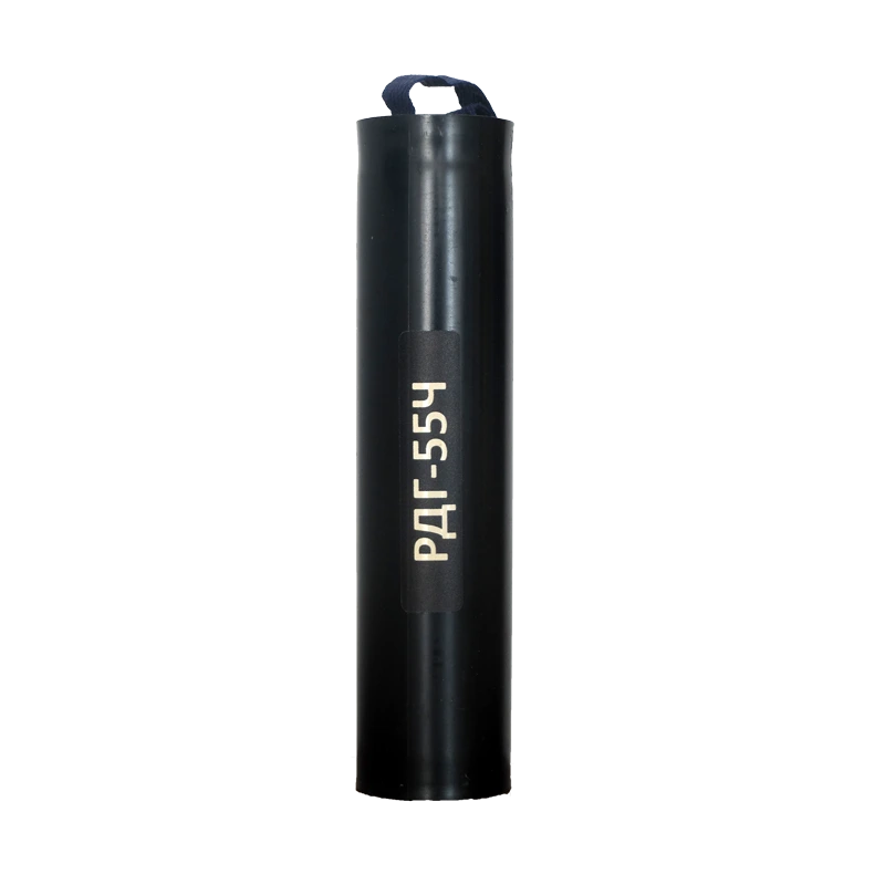 Hand-thrown smoke grenades HSG-55B (hereinafter – grenades) with bilateral smoke production are intended for laying a smoke-screen to mask individual firing points, small military units, blinding the enemy, but also to simulate fires of military equipment and on civilian targets for training – firefighting and rescue units at emergencies. The grenade possible application is to indicate the helicopter landing site and instruct the direction and wind strength for it.
