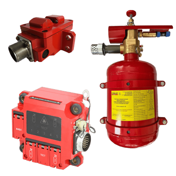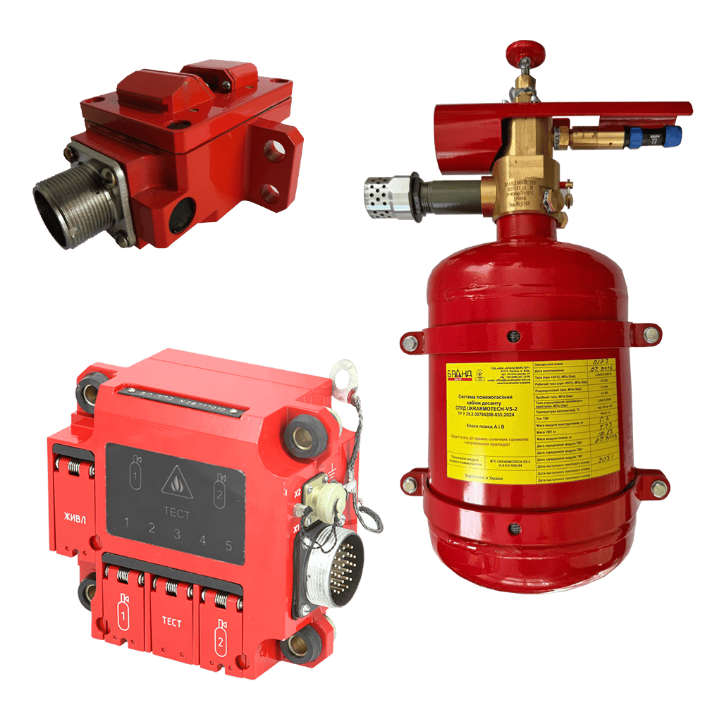Система пожежогасіння виявляє пожежу у відсіку екіпажу транспортного засобу та формує електричні сигнали управління елементами протипожежного обладнання: